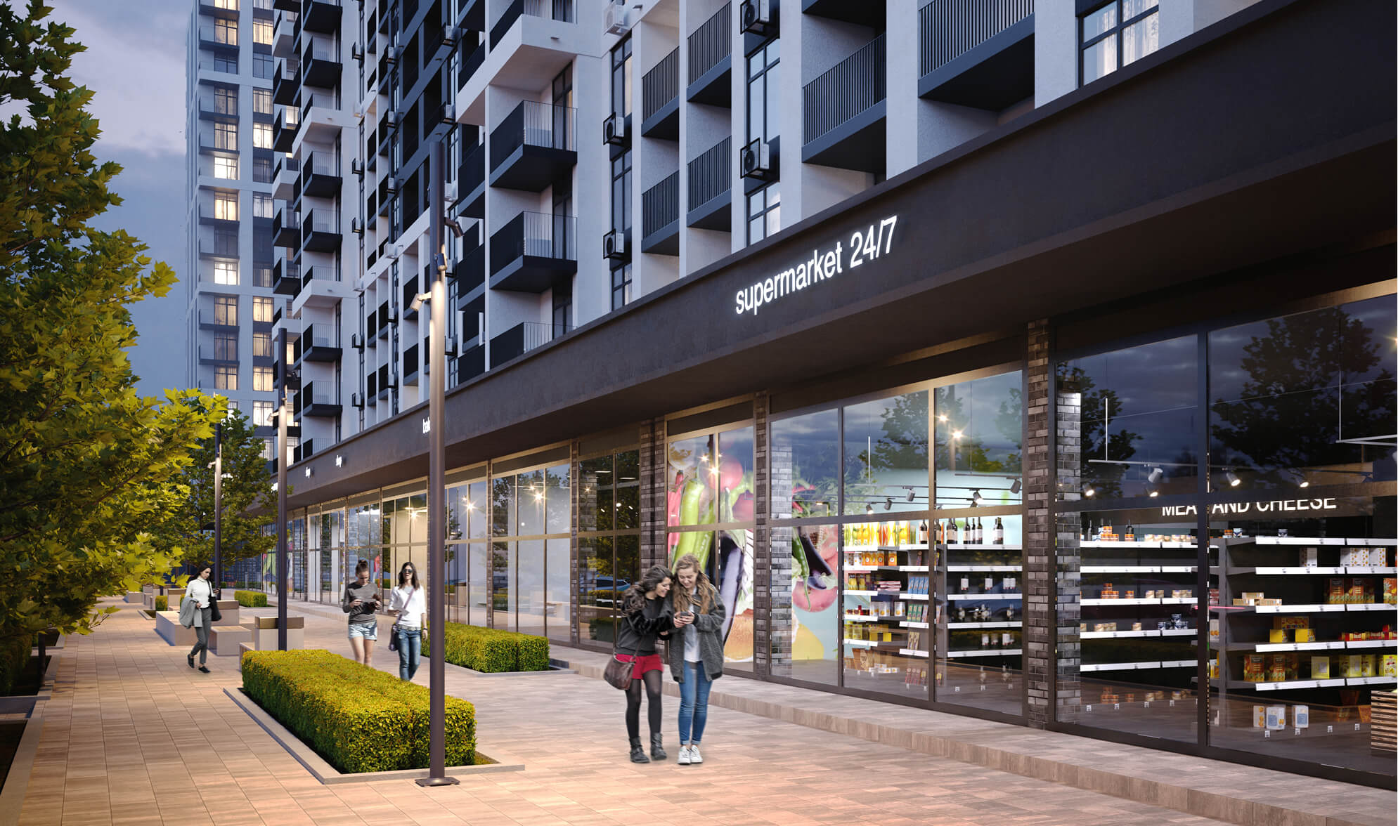 Аптека, супермаркет, клініка та спортзал